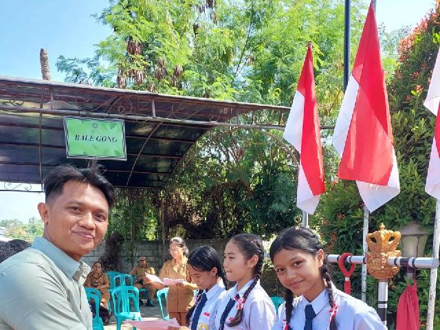 Gianyar _ Bhabinkamtibmas Desa Singakerta, Aiptu I Made Widastra bersama Babinsa Singakerta Kopda Kadek Endra Wirawan, melaksanakan kegiatan pengamanan jalan santai yang diikuti oleh siswa-siswi, Guru dan...